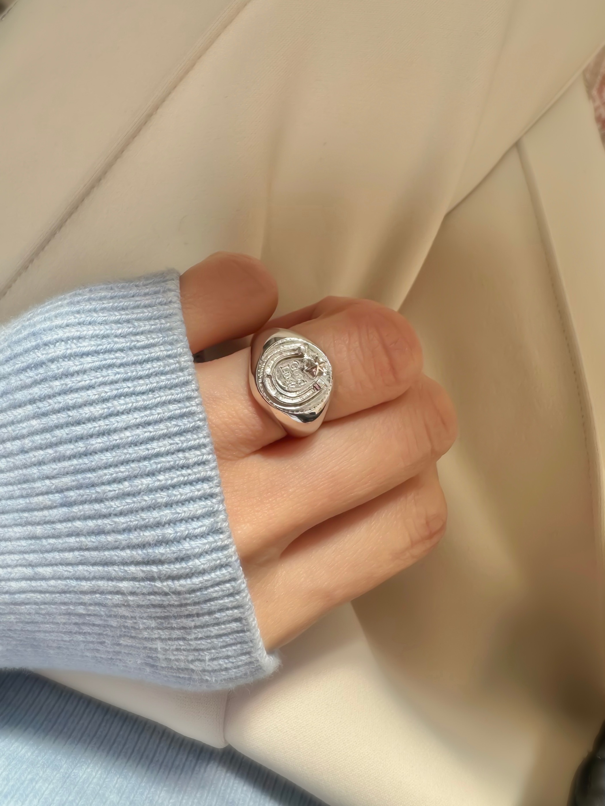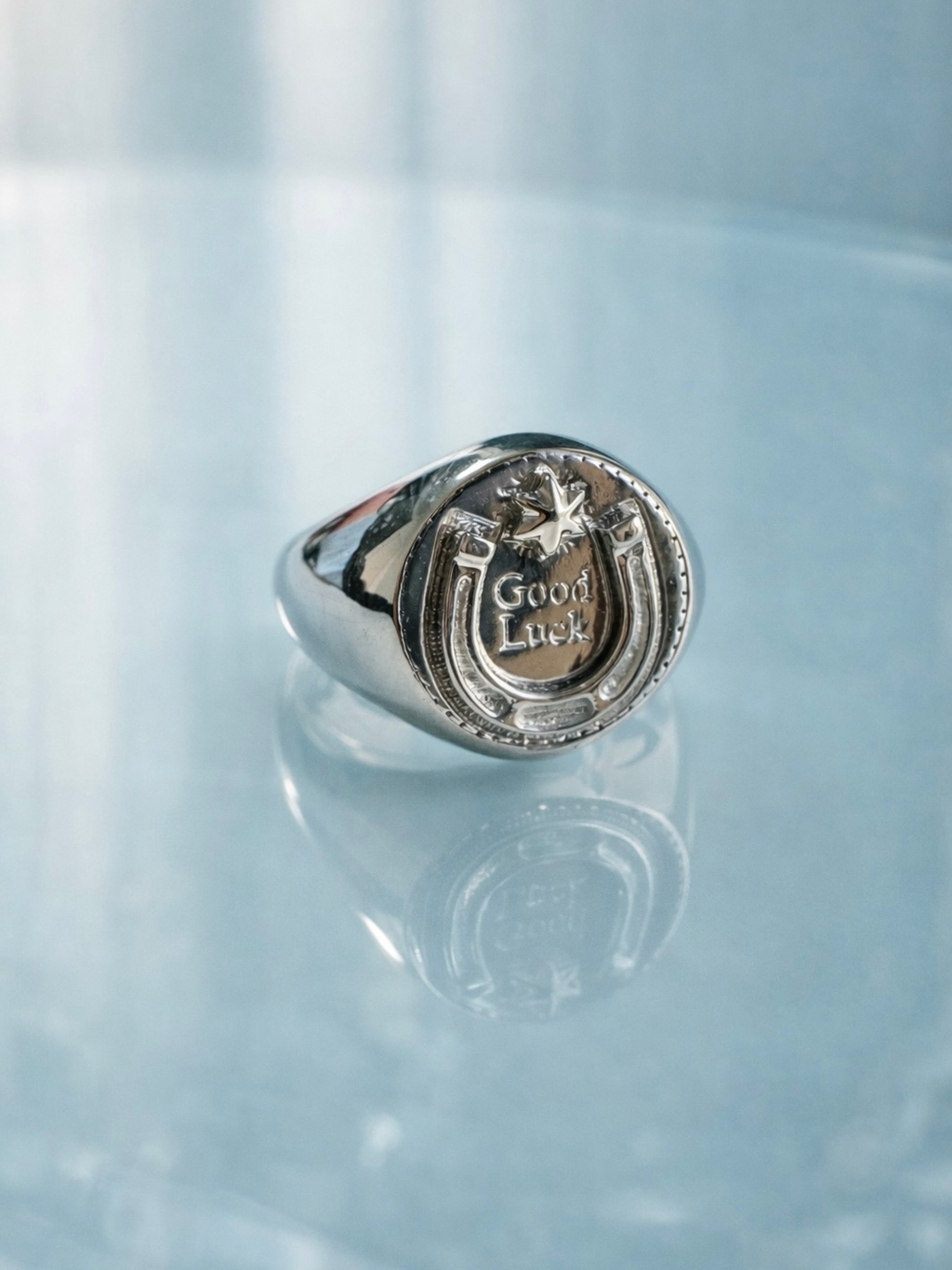 馬蹄モチーフの中には小さくGOOD LUCKと彫られており、その上には立体的な星が輝きます。